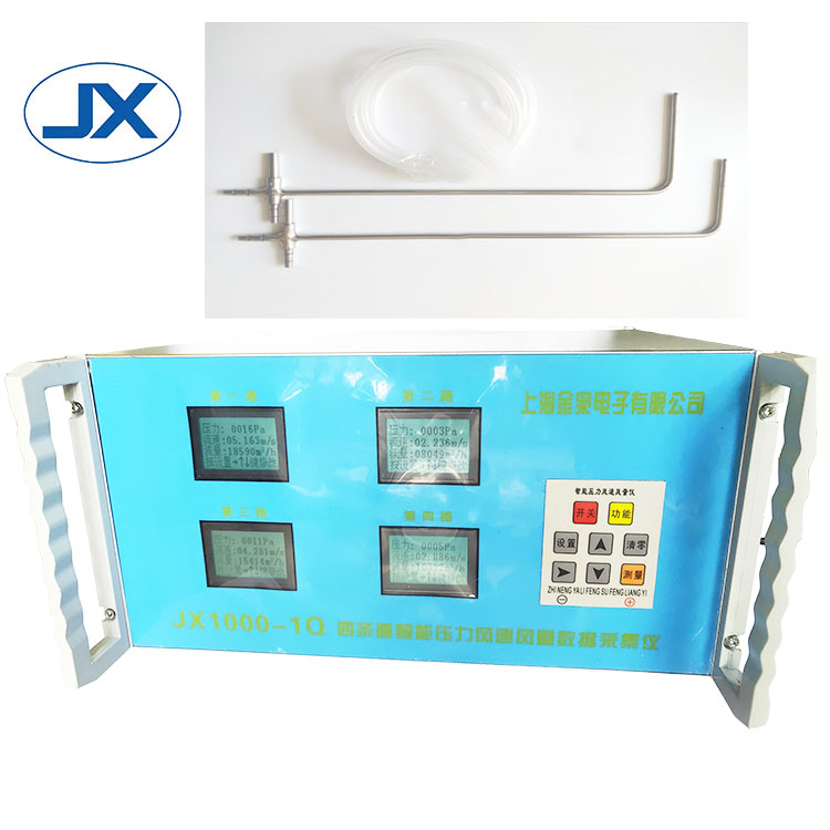 JX1000-1Q四通道智能压力风速风量数据采集仪是一种高稳定多功能的测量仪器,适用于0~±2000Pa(特殊量程可定做)范围内的气体的正压、负压和差压的测量,能同时检测四通道压力、风速、风量,是各环境监测站、实验室、医药卫生、建筑空调供暖、通风、无尘室测试或标定压力的理想仪器,配上皮托管可直读测量气体流速和风量。