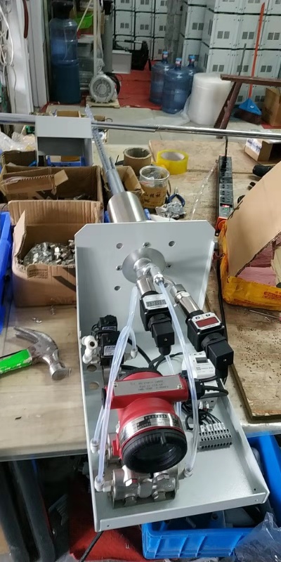 1概述JXPT-100温压流一体监测仪(以下简称温压流监测仪)由S型皮托管、热电阻、微压差/绝压传感器组、反吹单元和信号控制处理器等组成,是专门针对烟气排放监测的高尘、高温、高湿和高腐蚀环境而开发的一体式流速、动压、静压、烟温监测仪,符合***相关标准的要求,适用于烟气排放连续监测系统(CEMS)进行烟气流速、压力、温度及流量的实时连续测量。 2技术特点